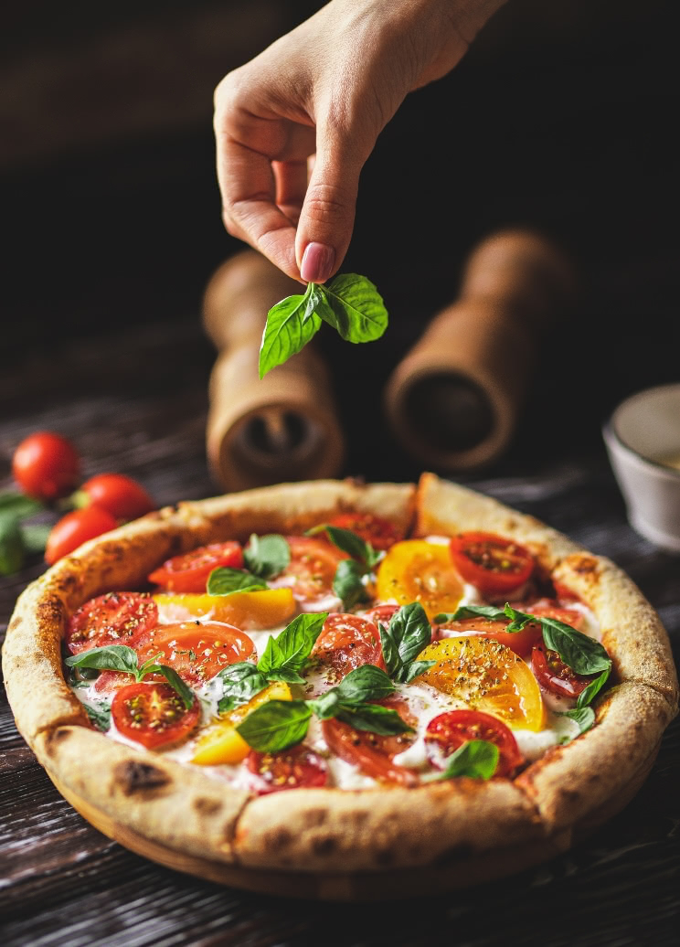 イタリア産水牛のモッツァレラ、有機栽培のバジル、契約農家直送の新鮮野菜など、素材の質にとことんこだわった逸品をお届けします。